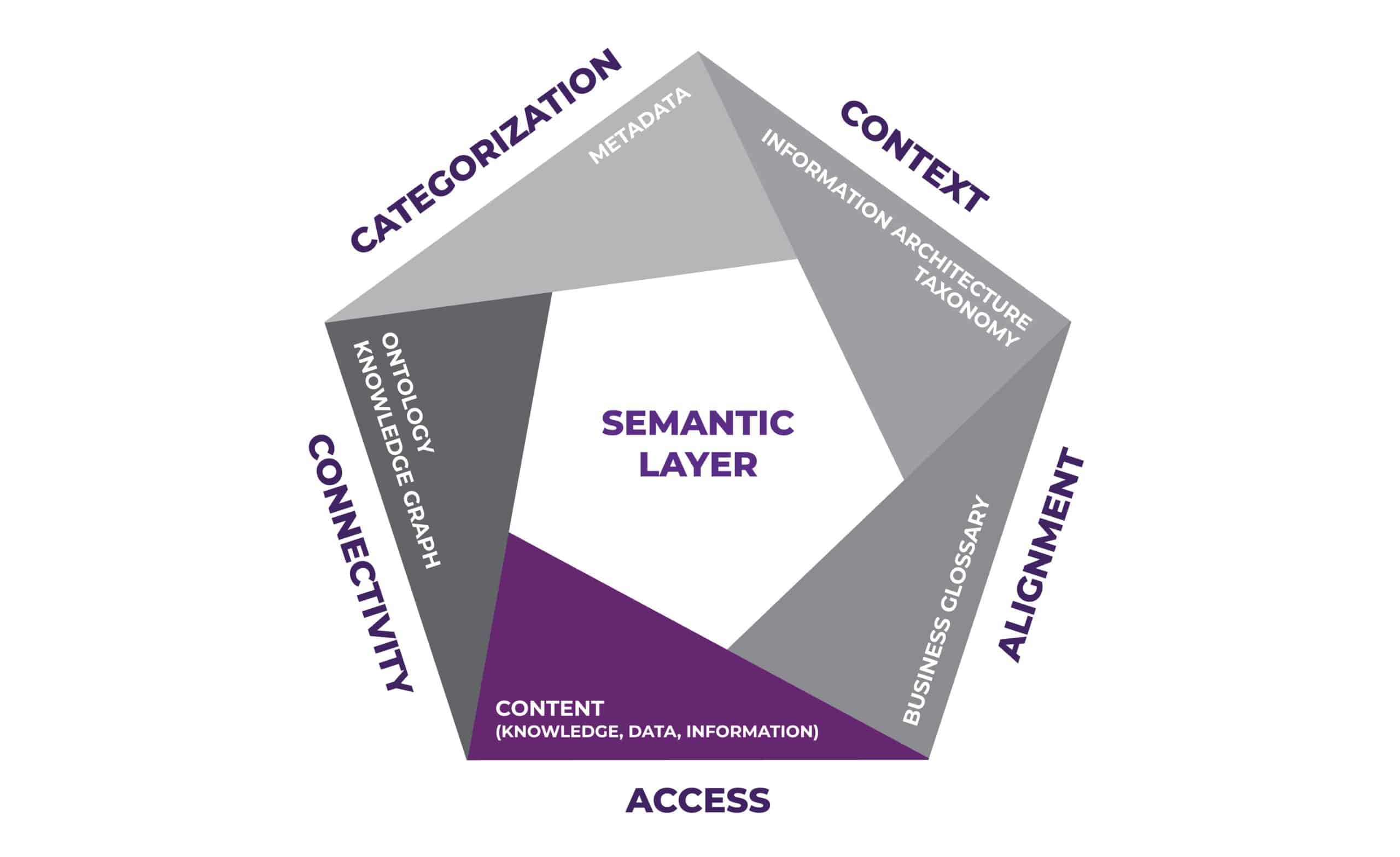 The semantic layer provides contextual understanding to content by capturing the meaning, relationships, and domain-specific knowledge embedded within it by incorporating data about the content. Through techniques such as semantic tagging and entity extraction, the content is enriched with metadata that describes its context, topics, and entities. This contextual understanding enables users to interpret and analyze content and other integrated data sources in a more meaningful way, leading to deeper insights and better decision-making.
